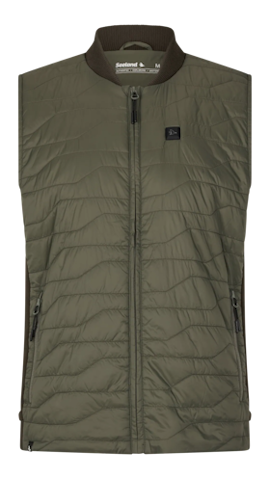 Lækker skindvest med quiltet for Store frontlommer og ekstra lille lomme i stor lomme med lynlås til magasiner osv. Stor rummelig ryglomme Farve Grøn/brun Rest Str. 46 - 68 Denver vest