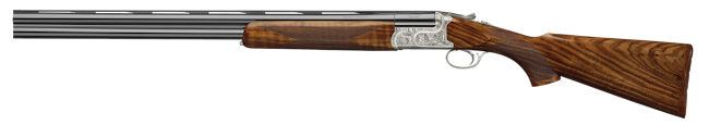 | Lækkert haglgevær med smukke indgraveringer. Fås i 76cm eller 81cm løb. Der medfølger 8 Teague chokes. Kal. 12/76 Kr. 72.300 ,- |