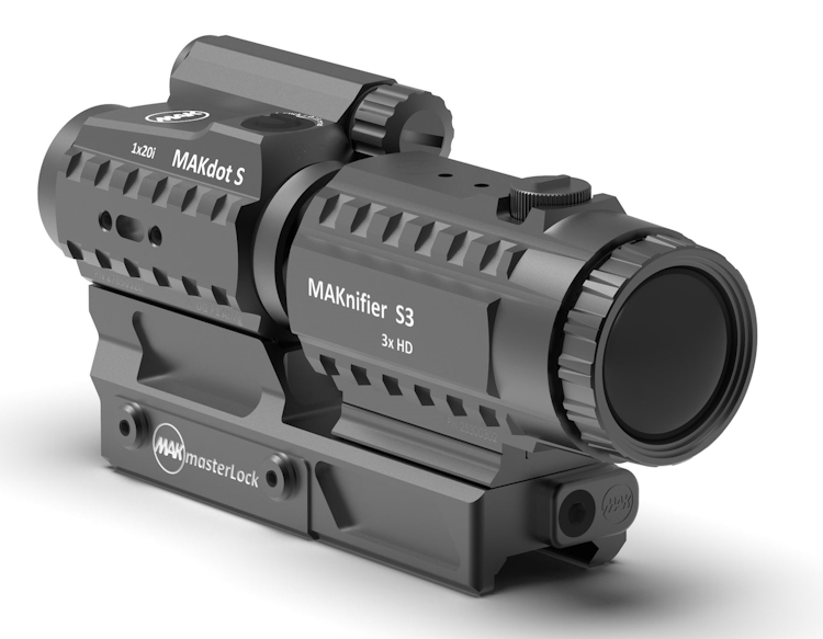 | MAK Combo System er et patenteret kombinationssystem udviklet til picatinny-skinner. Systemet anvender MAKmasterlock-montagen, som sikrer stabilitet og hurtig af- og påmontering. MAKdot S leverer en præcis 2 MOA prik, mens MAKnifier S3 har diopterjustering fra +2 til -2,5 dpt. Hele konstruktionen er fremstillet i slidstærke materialer og vejer kun 518g med en længde på 150mm. Kr. 12.499, - Nu Kr. 7.999, - |