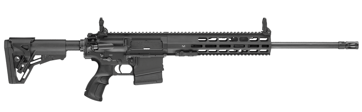 Merkel Halvautomatisk jagtriffel med åbne sigtemidler Træskæfte og rekylbagkappe Kaliber 308w, 30/06, 9,3 x 62 og 300 WM Fås med aftagelig eller hængslet magasin |