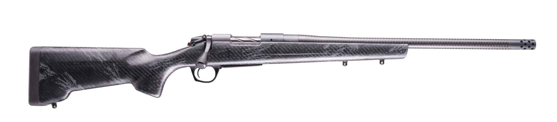 | Flot carbon skæfte med 20" fluted pibe, 5/8-24 gevind og mundingsbremse. 5 skuds magasin Kal. 308Win Kr. 17.999 , - |